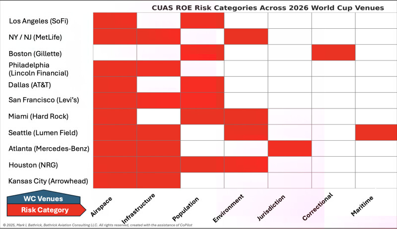 7 - Commercial UAV News (December 11, 2025). U.S. Government Seeks to Protect World Cup Stadiums from Rogue Drones, by Aaron Karp.  Available at: https://www.commercialuavnews.com/u-s-government-seeks-to-protect-world-cup-stadiums-from-rogue-drones