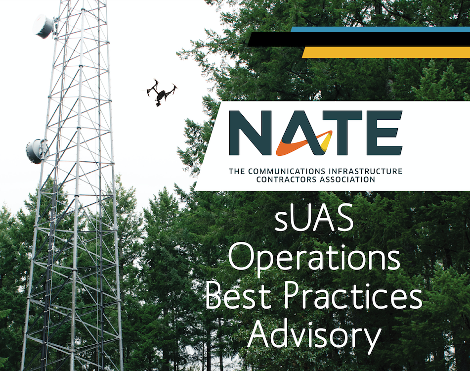 “The Association is excited to officially unveil this NATE sUAS Operations Best Practices Advisory resource document to the industry today,” stated newly appointed UAS Committee Chairman Bryan McKernan of Consortiq in Annapolis, Maryland. “NATE is a prominent leader when it comes to the integration and safe utilization of UAS around communications infrastructure and these guidelines can play a major role in providing the industry’s wireless carriers, vertical realtors, contractors and technicians with a go-to resource to help standardize the training requirements and operator processes in the industry. NATE’s goal is for this new resource to ultimately serve to help scale commerce drone use in the industry in order to maximize the many benefits of this technology.”