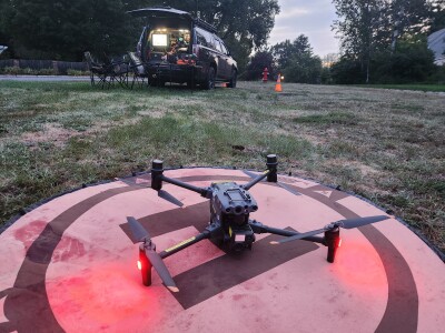 The company has been in operation for three years now and is outfitted with three DJI Matrice 30T Thermal drones. Russell chose these drones for their ruggedness and reliability in harsh weather conditions like wind, rain, and snow. The rest of his set-up lives in the back of his truck which includes 2-way radios and a control center with large monitors for the clients to watch the search, and extra battery packs for long missions. Russell currently holds a Part 107 license.