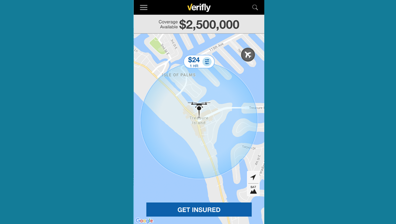Verfily. The company was launched just last year to easily and simply provide coverage for anyone trying to figure out how they can build a business around services that are associated with drones.