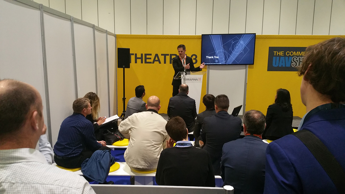 Jon Damush, Chief Growth Officer for Insitu, presenting during the 2017 Commercial UAV Show.