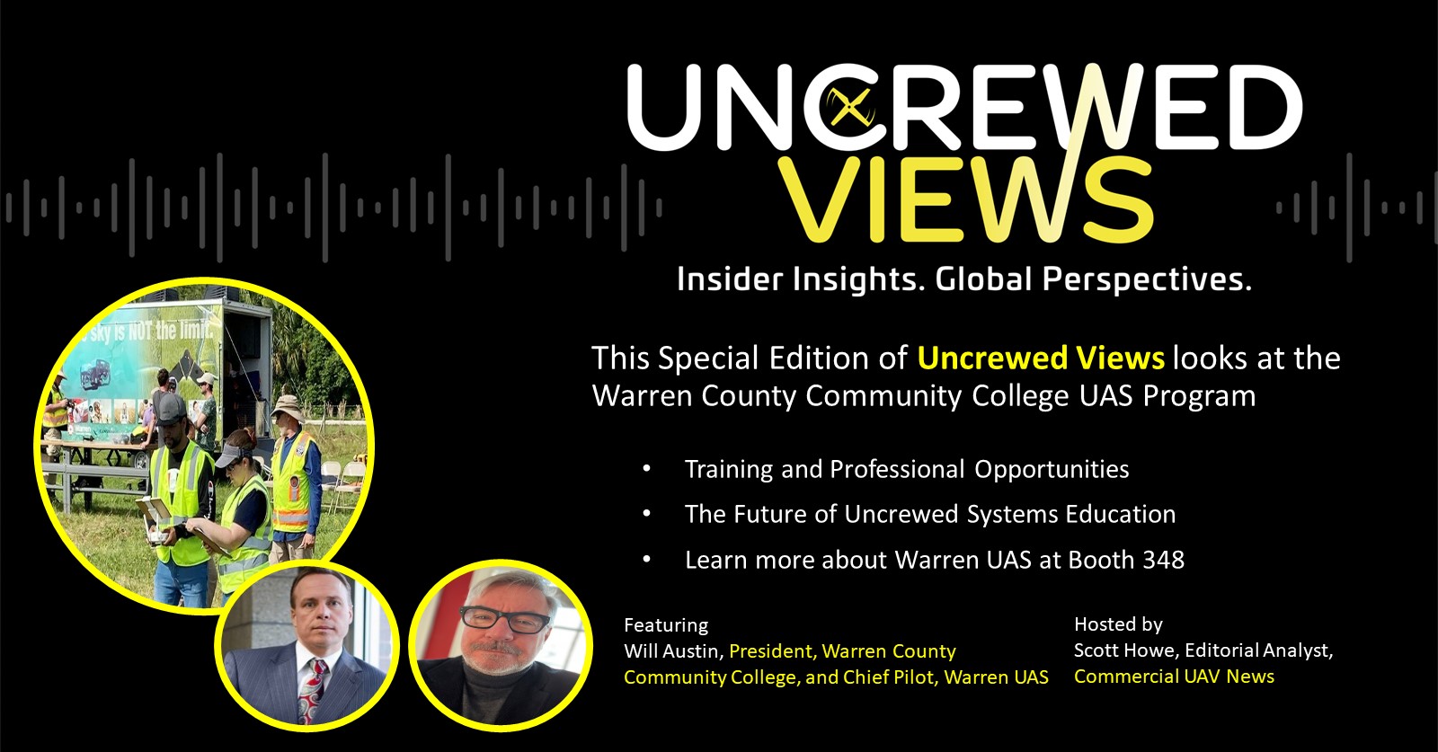 For this special edition of Uncrewed Views, Scott Howe, Editorial Analyst for Commercial UAV News, talks to Will Austin, President, Warren County Community College (WCCC), and Chief Pilot, Warren UAS. They discuss WCCC’s long history of training pilots and other drone industry professionals, the need for specialized education in the UAV sector, how WCCC collaborates with public and private entities on innovative projects, and much more.