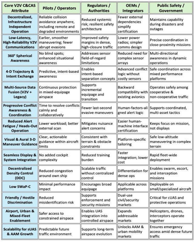 Table 1 - V2V C&CAS - Executive Operational Benefits Matrix
