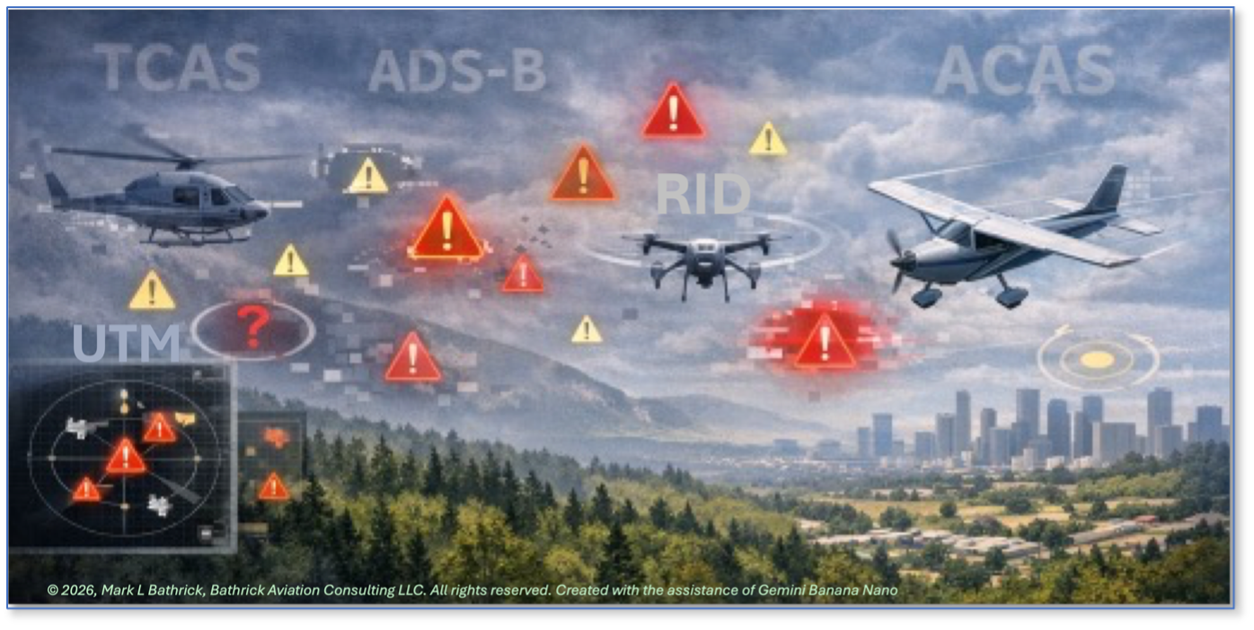 Human‑factors evidence reinforces these concerns. Both pilots and remote operators are susceptible to alert fatigue when presented with frequent, ambiguous, or nondirective advisories. In low‑altitude environments characterized by high traffic density and dynamic maneuvering, nuisance alerts become common.29 Operational experience shows that crews respond predictably, by inhibiting alerts, discounting warnings, or relying on informal coordination methods, a situation I have personally experienced as a pilot. Accident‑prevention bulletins and safety reviews have repeatedly identified this pattern as a systemic risk rather than an individual failure.