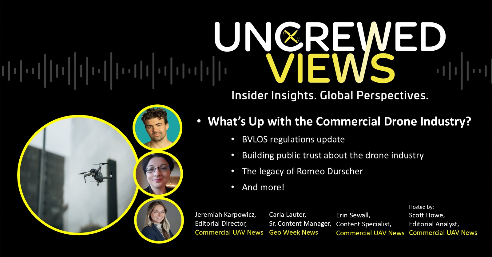 For our latest Uncrewed Views podcast, Scott Howe, Editorial Analyst for Commercial UAV News, is joined by Jeremiah Karpowicz, Editorial Director of Commercial UAV News, Carla Lauter, Sr. Content Manager for Geo Week News, and Erin Sewall, Content Specialist for Commercial UAV News, for a wide-ranging discussion about the drone industry.