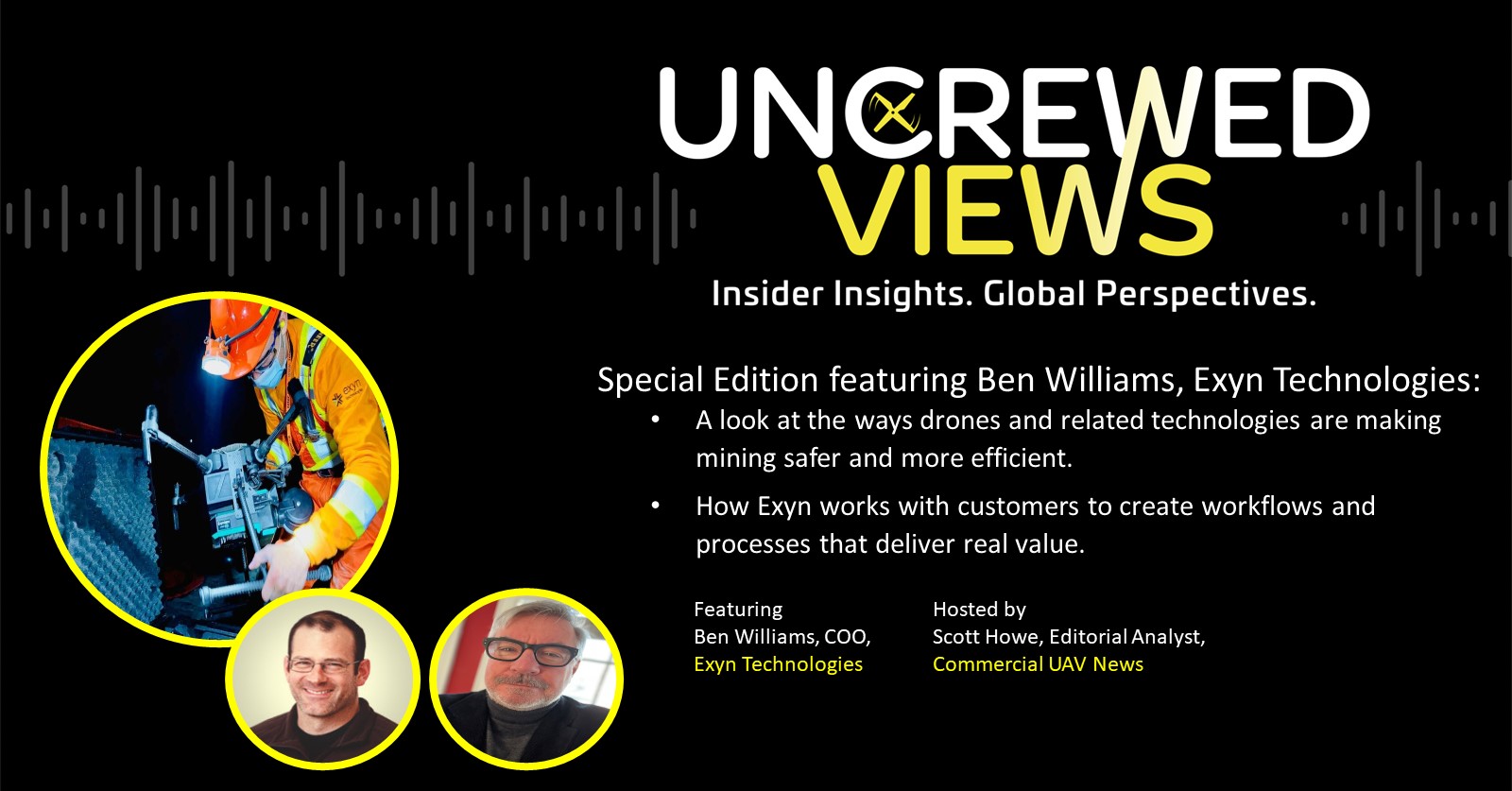 For this special edition of Uncrewed Views, Scott Howe, Editorial Analyst for Commercial UAV News, spoke with Ben Williams, COO of Exyn Technologies, a pioneer in the use of autonomous aerial robot systems for complex, GPS-denied environments. Williams discussed the ways mining operations currently use drones and related technologies, how Exyn works with clients to create workflows and processes that produce real value, and what the future holds for the integration of uncrewed systems with mining operations.