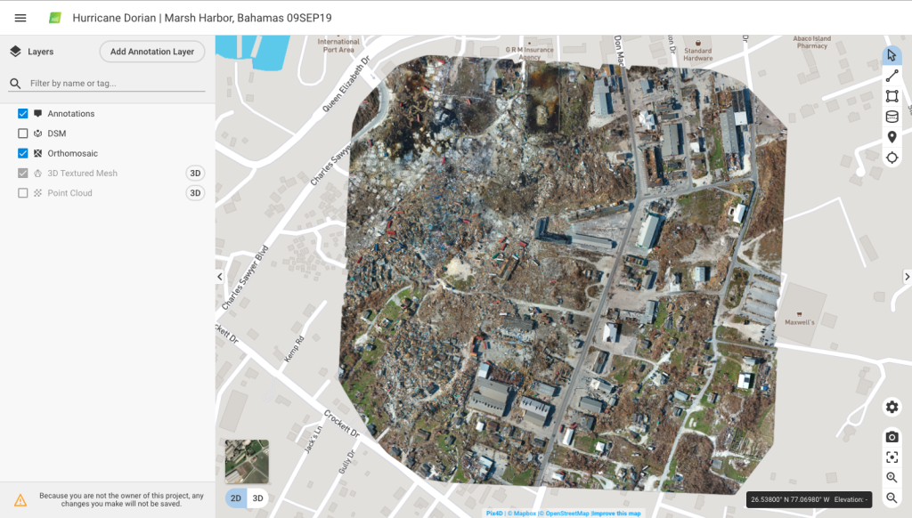 Danielle Gagne: A major game changer in the space was the introduction of Pix4Dreact, which can operate without any internet connection. You recently tested the new Pix4Dreact software in a real-life situation assessing the aftermath of Hurricane Dorian in the Bahamas. How did this tool add value to your SOP? Do you think it will expand use cases for drones in other emergency scenarios?