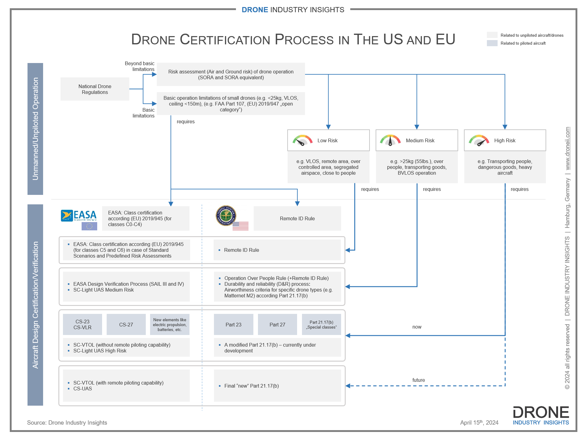 Las actualizaciones globales significativas incluyen la aprobación por parte de la Comisión Europea de operaciones de despegue y aterrizaje vertical (VTOL) y taxis aéreos, y el enfoque de la Administración Federal de Aviación de EE. UU. en la detección y control de drones. Estos cambios son parte de un esfuerzo más grande para integrar de manera segura los drones en el espacio aéreo compartido, pasando de reglas básicas a un sistema más detallado y específico para la certificación de drones. A medida que las autoridades regulatorias de todo el mundo hacen más progresos, mantenerse al día con estos cambios y entender lo que significan es vital para cualquiera en la industria comercial de drones.