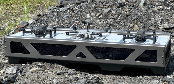 At DSEI 2023, Rheinmetall and Quaze showcased the DSTOW recharging 3 Parrot ANAFI USA drones. Right now, the DSTOW is built-ready for all configurations of Rheinmetall’s Mission Master A-UGVs and all drones from the Blue UAS Cleared List compiled by the U.S. Military’s Defense Innovation Unit.