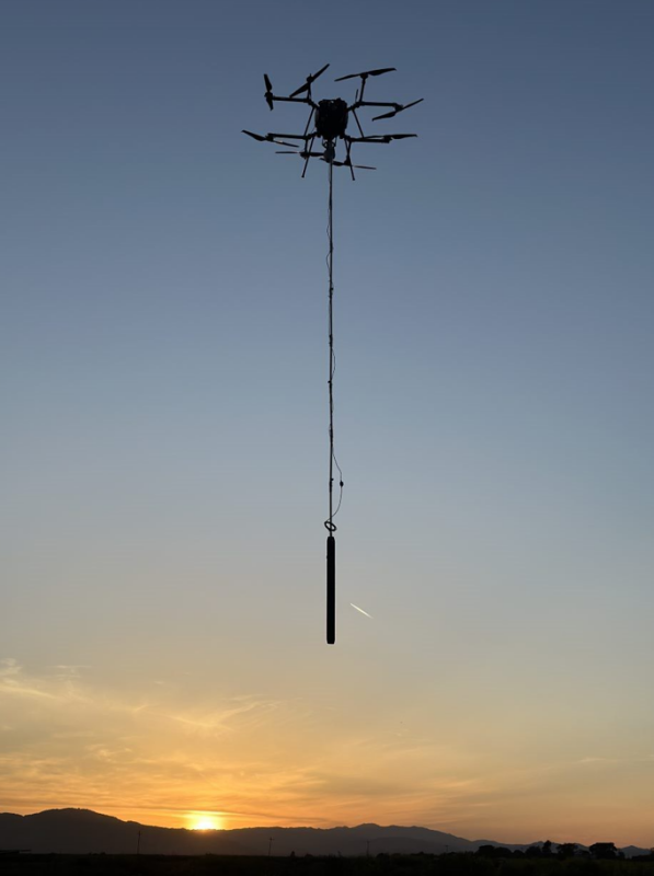 Skyfront MagniPhy delivers significantly improved data quality and enhanced ability to find subterranean objects because its rigid attachment ensures the magnetometer heading remains constant during flight, and its distance from the drone reduces magnetic noise. Its aerodynamic design improves operations in high winds, reducing instrument motion and the resulting noise. It enables faster and more efficient operations because it is easily transportable (it folds from 16.4 feet to 1.4 feet to fit in carry-on luggage), connects to the drone in seconds, and has approximately 8 hours battery life with swappable batteries. It also enables safer operations by reducing the potential to snag trees when flying low to the canopy. The attachment mechanism unfolds when the drone takes off and folds when the drone lands to ensure simple operations.