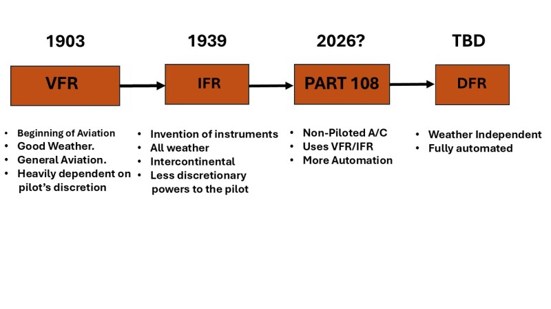 The question, then, is not whether DFR is a prerequisite for Part 108. It is whether Part 108 is a prerequisite for the future that DFR envisions. The answer to that is yes. Part 108 is the bridge between the legacy operating modes and the digital‑native future. It allows uncrewed aircraft to scale under today’s rules while creating the operational, technological, and cultural conditions that will eventually make a new operating mode both viable and necessary.