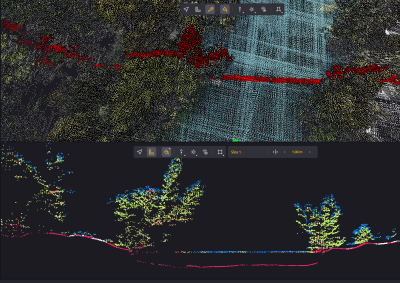YellowScan Navigator addresses all of these pain points in a single deployment. Flying at low altitude, the system can map a 300-meter stretch of river with 50 meters of bank on either side in just 10 minutes, with data processing taking less than two hours. The result is a unified digital terrain model that integrates terrestrial and subaquatic data, without the need for merging two different models, with point densities of 20 to 50 points per square meter at the riverbed. The system's ability to penetrate vegetation cover also ensures data continuity between the wet bed and wooded banks, making it particularly valuable for river mobility studies, erosion monitoring, and floodplain modeling.
